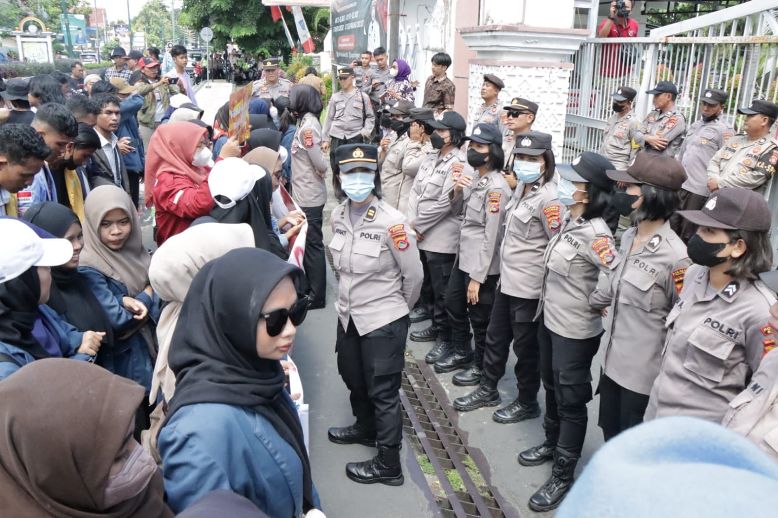 “Demo yang baru saja berlangsung pesertanya sebagian pemuda, pemudi dan mahasiswi, artinya si pendemo ada yang perempuan juga, maka sudah bagus diatensi oleh pengamanan yang perempuan. Tapi secara tugas itu sama saja, ini hanya kebetulan saja,”tambahnya.