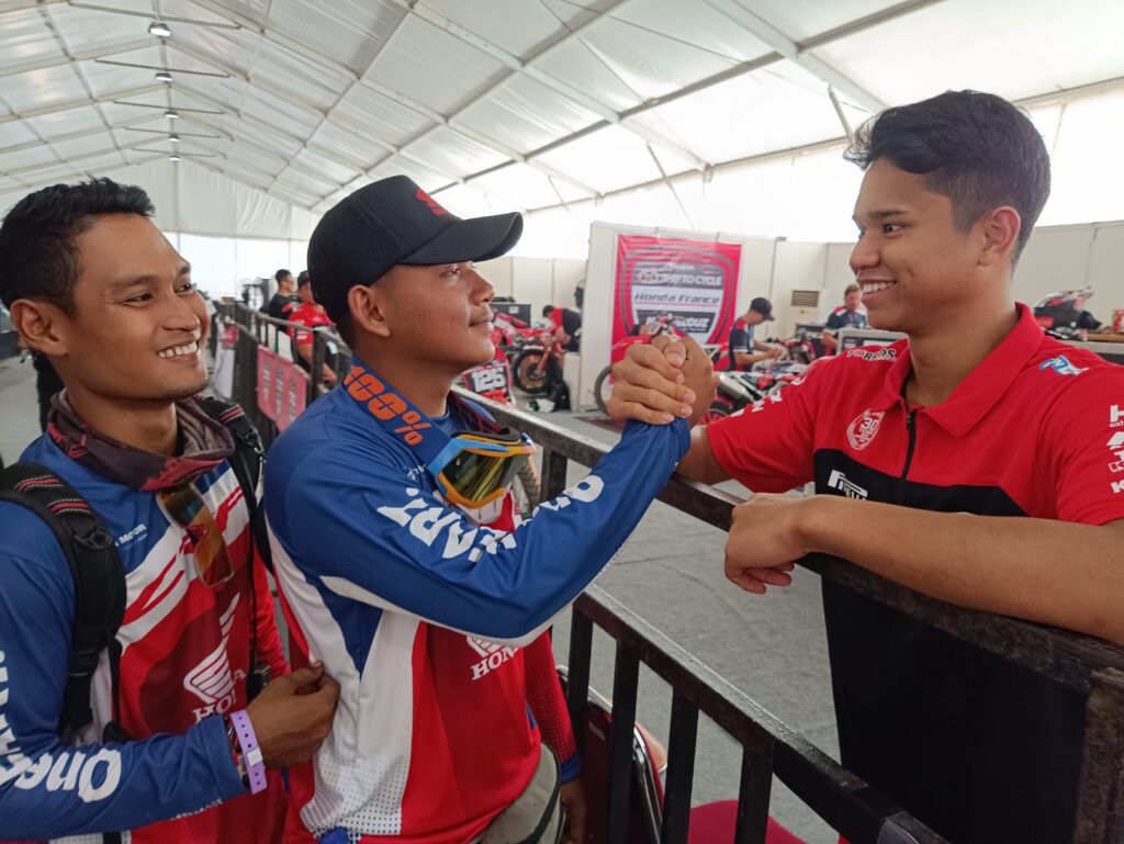 Para bikers ini juga mendapatkan kesempatan langsung mengunjungi paddock tim Honda Racing Corporation Motocross, JM Astra Honda Racing, dan AHRT. Tidak hanya sekedar melihat bagaimana kondisi paddock dan keterampilan mekanik balap yang bertugas, mereka juga bertemu dengan crosser AHRT yang turun bersama JM Astra Honda Racing Team yakni Delvintor Alfarizi.