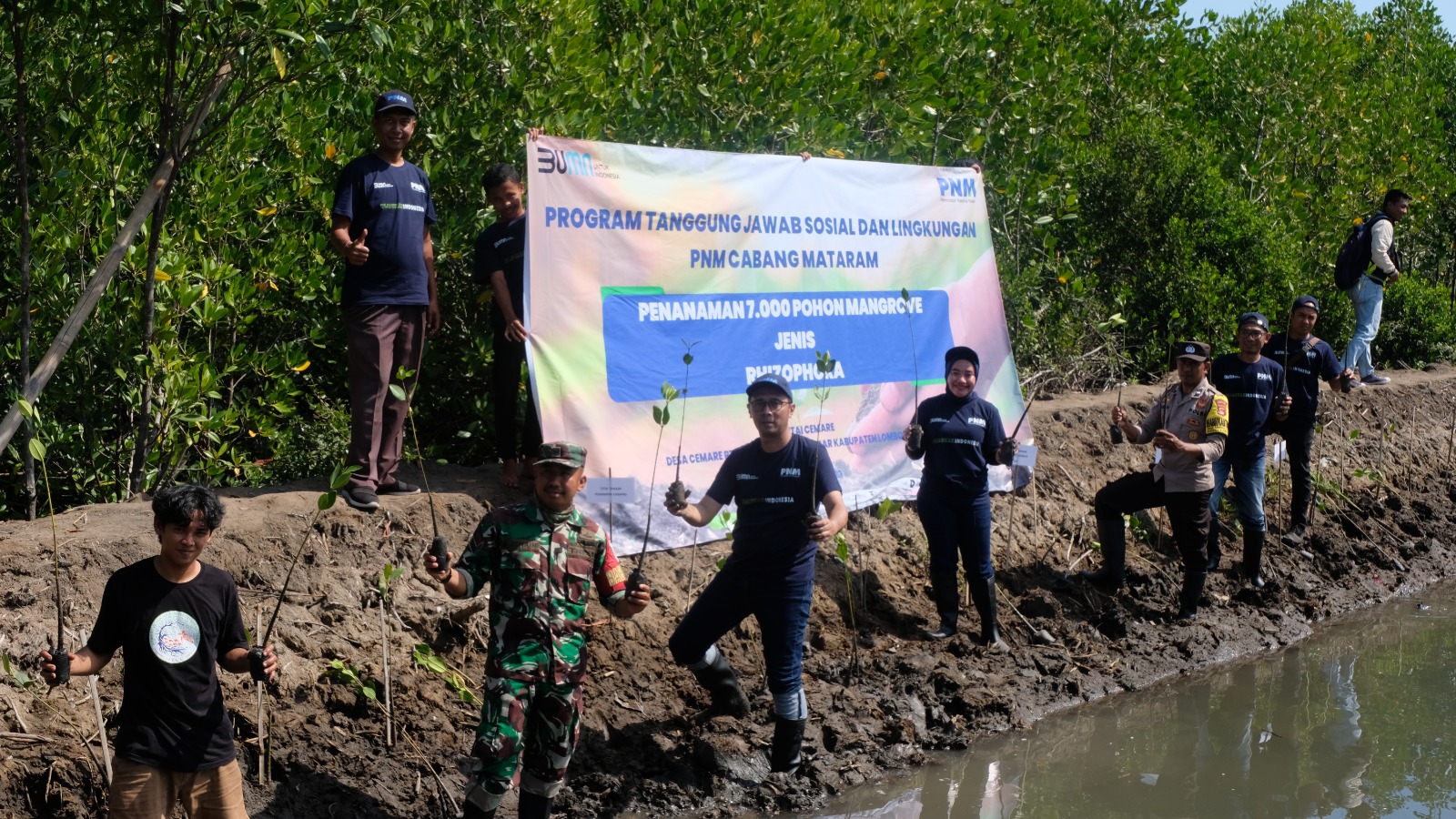 Dalam rangka memperingati hari kemerdekaan Republik Indonesia serta menyukseskan gerakan kolaborasi BUMN hijaukan Indonesia melalui program Tanggung Jawab Sosial dan Lingkungan (TJSL), PT Permodalan Nasional Madani (PNM) Cabang Mataram  menanam 7.000 bibit pohon mangrove di Dusun Cemare, Lembar Selatan, Kecamatab Lembar Kabupaten Lombok Barat, Sabtu (19/8/2023).