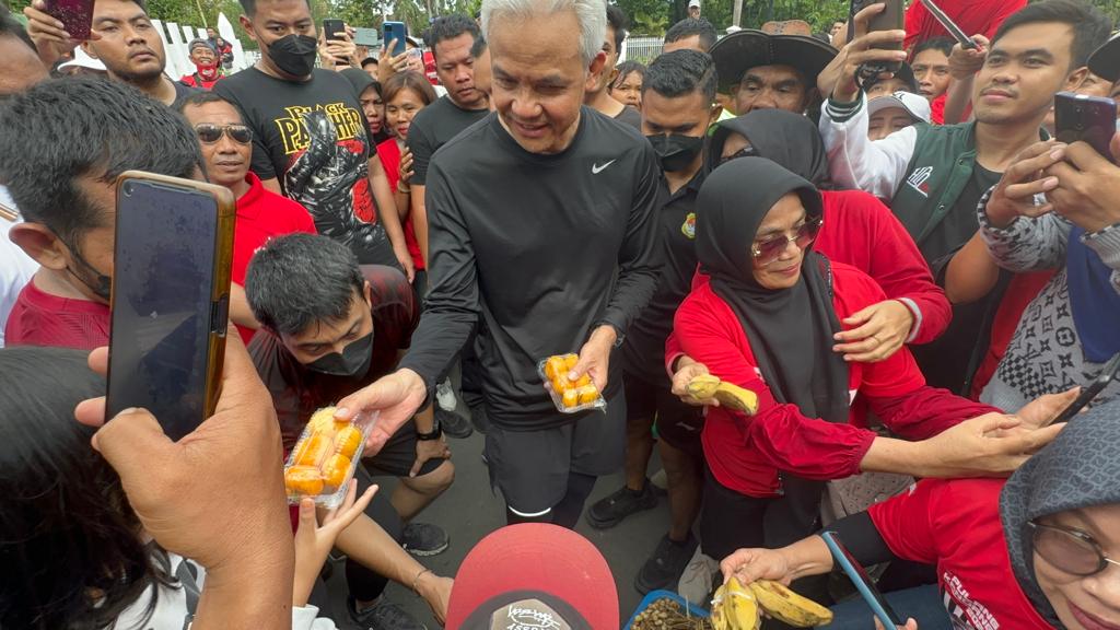 Calon presiden (Capres) Ganjar Pranowo berolahraga di Car Free Day (CFD) Jalan Udayana, Kota Mataram.
