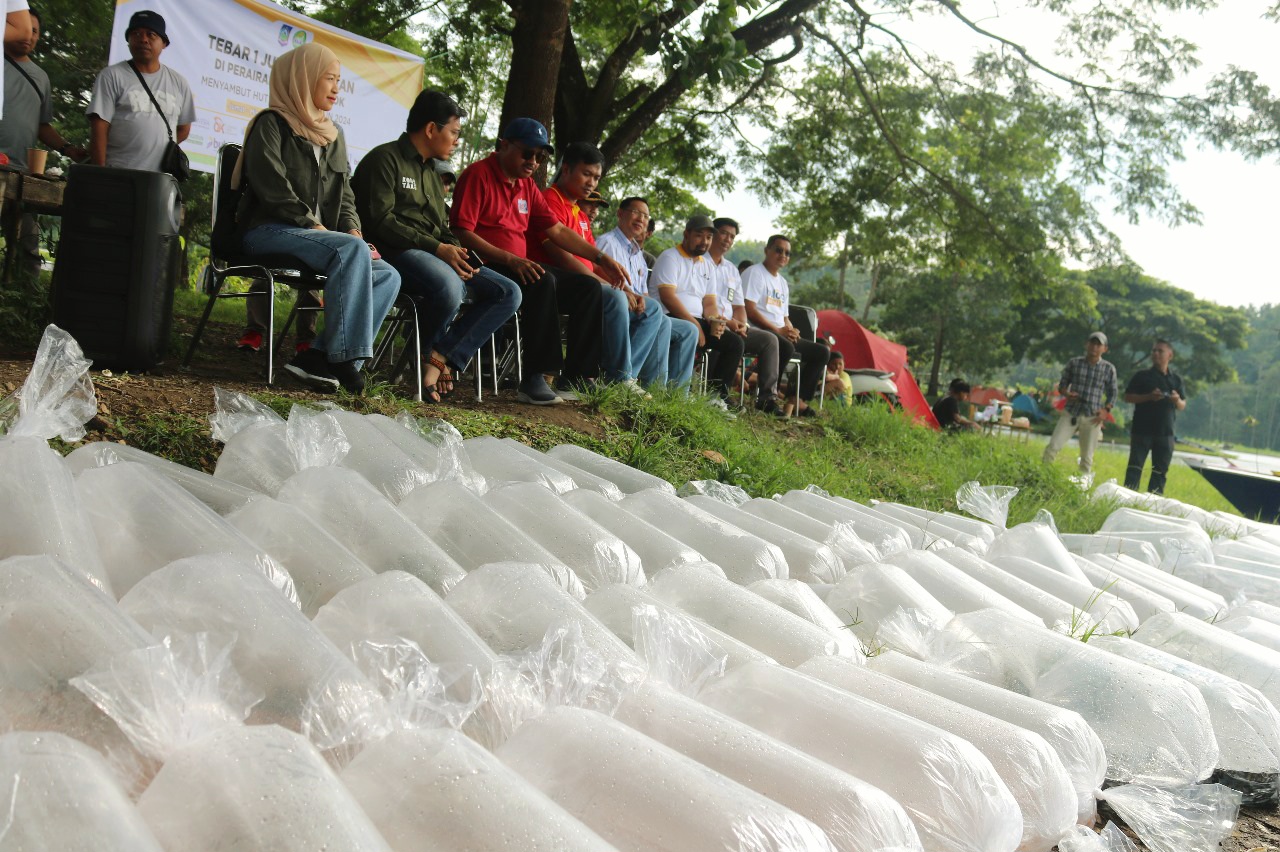 “Ikan yang ditebar ini jenisnya ikan nila, karper, ikan koi, ikan tawes dan lele. Jumlah secara akumulatif tahun ini sebanyak 1 juta ekor yang kita tebar di banyak tempat,” katanya.