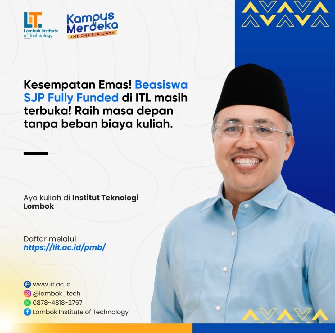 Lombok Institut Teknologi (LIT) kembali membuka kesempatan emas bagi calon mahasiswa yang ingin melanjutkan pendidikan tinggi tanpa beban biaya. Lewat program Beasiswa SJP Fully Funded, mahasiswa berkesempatan untuk kuliah secara gratis 100% tanpa harus memikirkan biaya semesteran.