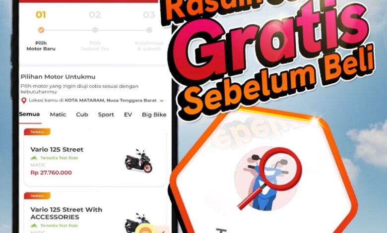 Mataram (netlombok.com)– Memberikan kemudahan sekaligus pengalaman terbaik bagi konsumen, Astra Motor menghadirkan fitur Test Ride melalui aplikasi Motorku X. Lewat fitur ini, konsumen dapat merasakan langsung sensasi berkendara menggunakan sepeda motor Honda impiannya secara gratis sebelum memutuskan untuk membeli. Program ini menjadi solusi tepat bagi masyarakat yang masih galau menentukan pilihan sepeda motor, terlebih menjelang momen mudik dan Hari Raya Idul Fitri.
